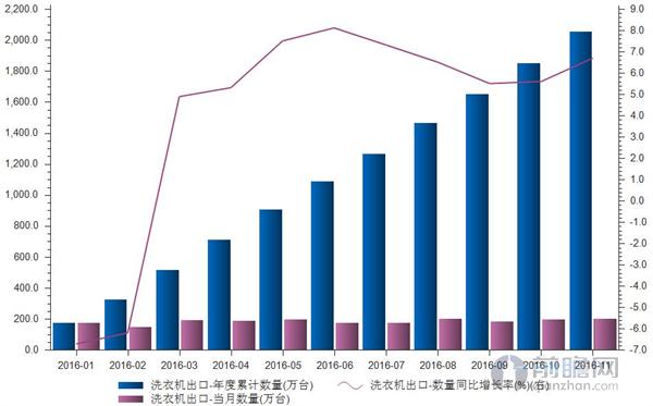 據(jù)前瞻數(shù)據(jù)庫數(shù)據(jù)顯示,2016年1-11月我國洗滌機(jī)械出口累計(jì)2055萬臺,累計(jì)同比增長6.7%。2015年12月中旬,美國家電制造商惠而浦舉起反傾銷大棒,該公司向美國商務(wù)部和國際貿(mào)易委員會提出申請,請求對韓系廠商三星、LG的大容量洗滌機(jī)械產(chǎn)品進(jìn)行反傾銷調(diào)查。值得注意的是,這些洗滌機(jī)械的原產(chǎn)地均是中國。隨后,美國商務(wù)部與國際貿(mào)易委員會接受惠而浦的申請,對中國生產(chǎn)的洗滌機(jī)械開展了反傾銷調(diào)查。